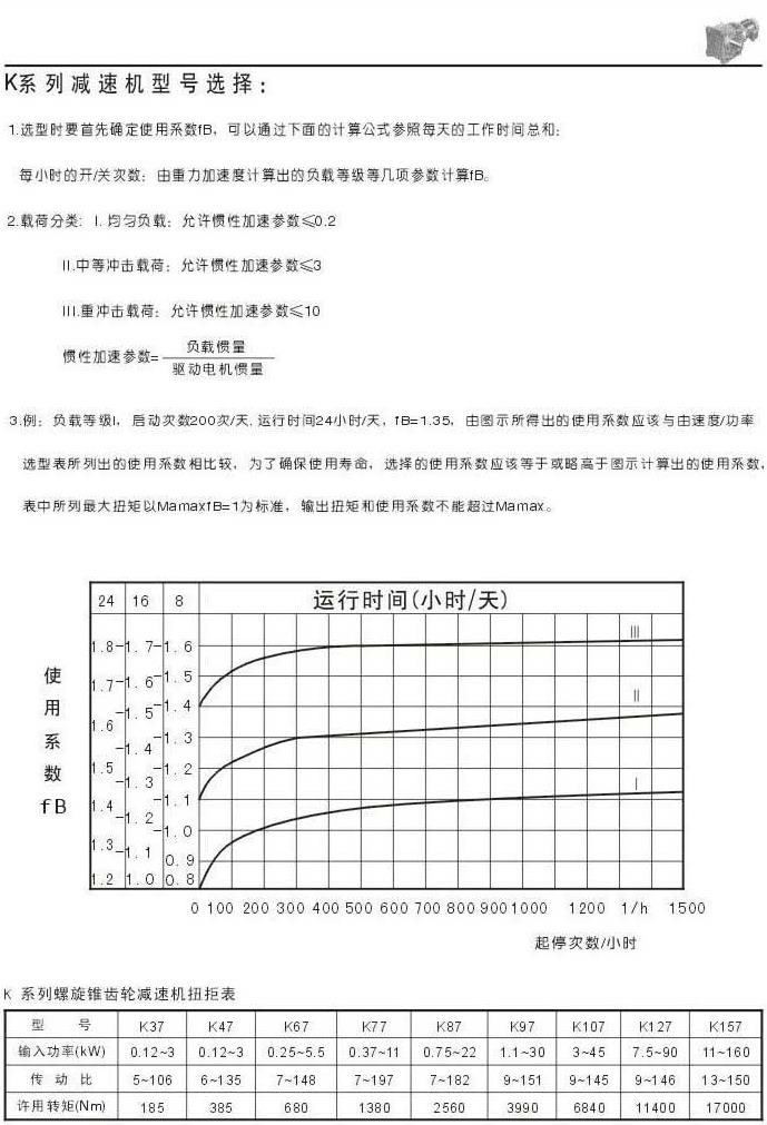 型號(hào)選擇扭矩表