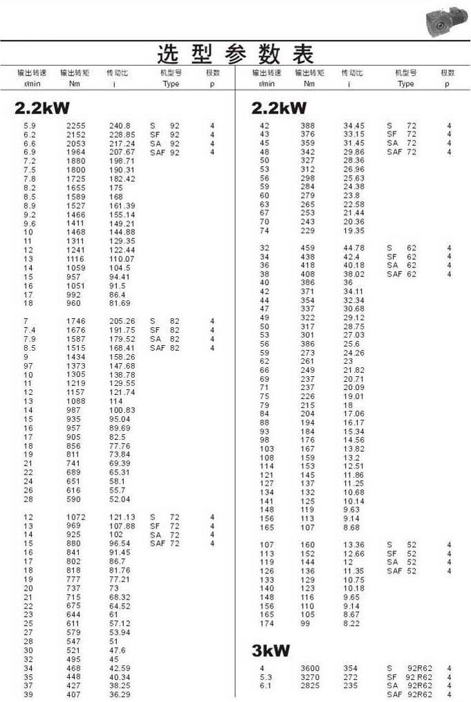選型參數(shù)表2.2kW(續(xù))和3kW
